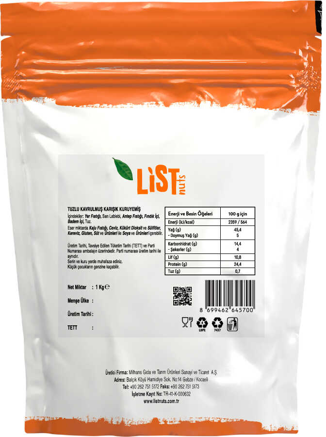 Ayrı ayrı birçok paket almak yerine en sevilen yemişleri tek bir avantajlı pakette sunması pratiklik ve ekonomik fayda sağlar. Yüksek bitkisel protein içeriğiyle vücut fonksiyonlarını destekleyen besleyici bir profil sunar. List Nuts güvencesiyle hazırlanan ambalaj, kuruyemişlerin nemlenmesini önleyerek tazeliği uzun süre korur. Her bir yemişin aynı kalite ve çıtırlık standard