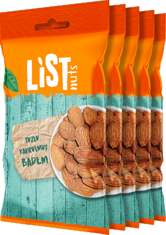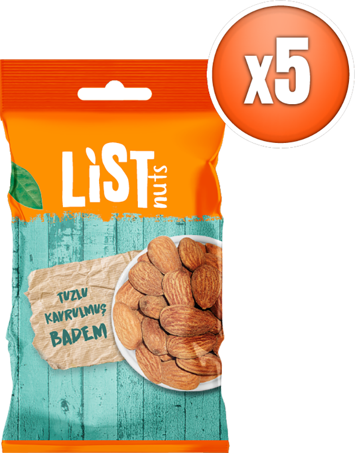 Tuzlu Kavrulmuş Badem Avantaj Paketleri, bademin sunduğu zengin E vitamini ve sağlıklı doymamış yağ asitlerini, tazeliği garantileyen 40 gramlık porsiyonlarda (5'li ve 10'lu setler halinde) sunar. List Nuts güvencesiyle kavrulan bu bademler, gevrek dokusu ve ideal tuz dengesiyle sağlıklı ara öğünlerin en popüler üyelerindendir. Kalp ve damar sağlığını destekleyen bileşenleri ile bilinen badem, günlük E vitamini ihtiyacınızın yaklaşık %37'sini tek bir porsiyonla karşılamanıza yardımcı olur.
