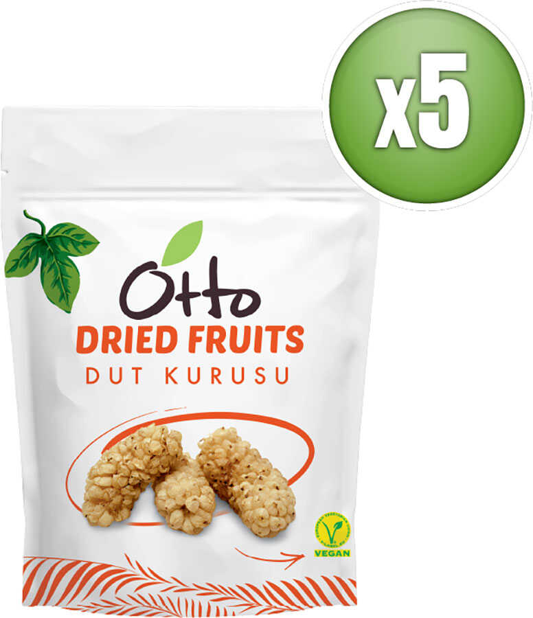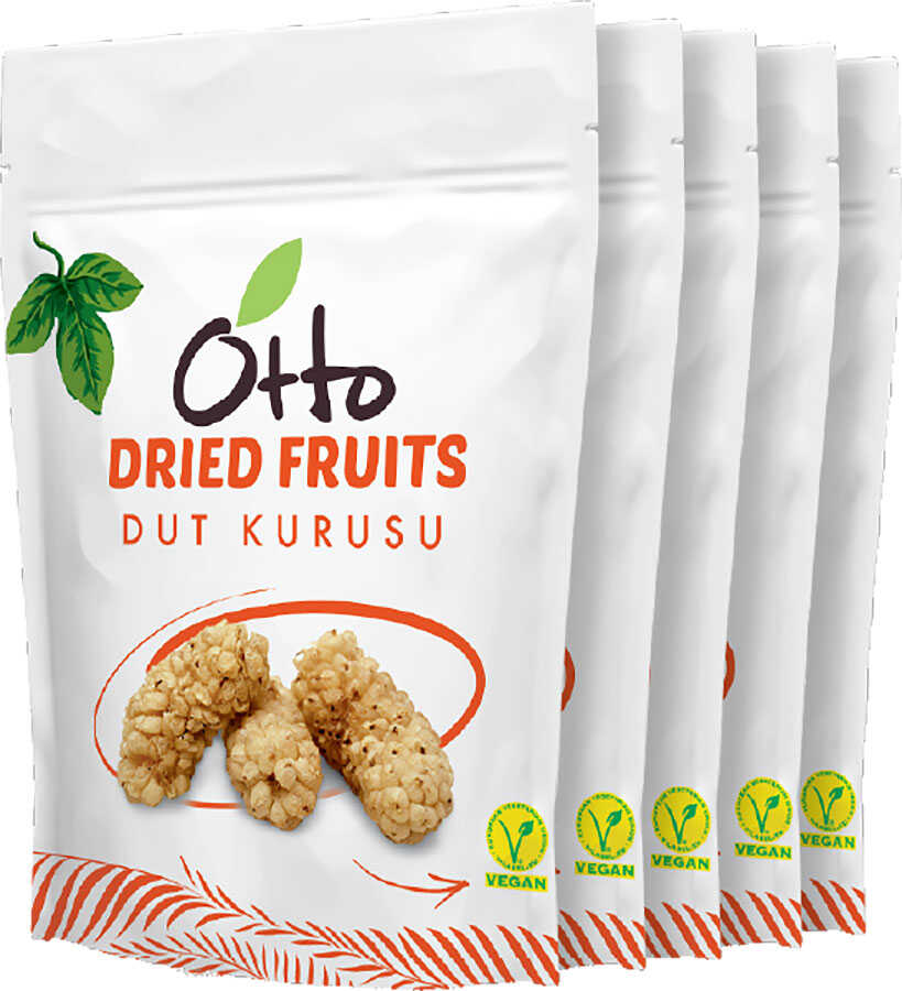 Vegan Dut Kurusu Setleri, Anadolu’nun taze beyaz dutlarının doğal yöntemlerle kurutulmasıyla elde edilen besleyici ve enerjik paketlerden oluşur. Otto Dried Fruits kalitesiyle hazırlanan bu 3'lü veya 5'li setler, dutun en saf ve işlenmemiş halini 35 gramlık pratik ambalajlarda sunar. Bitkisel protein ve yüksek lif içeriğiyle öne çıkan dut kurusu, demir, kalsiyum ve magnezyum desteği sağlayan mükemmel bir sağlıklı atıştırmalıktır.